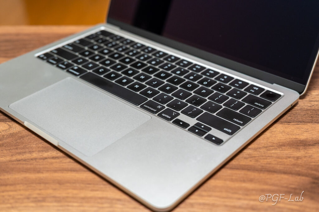 「Air」という名前の割に、手に取ると意外とずっしりくる重み。 しかし、いざデスクや膝の上に置いたとき、この適度な重みが抜群の安定感を生んでくれるんです。タイピングしても本体が揺れない。この「どっしり感」が、確かな作業への安心感に繋がっています。